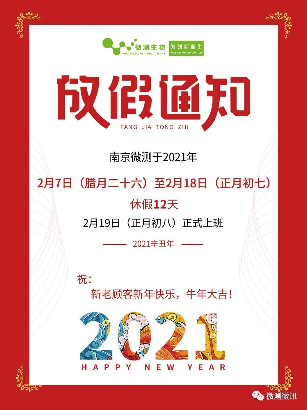 時(shí)光荏苒,歲月悠悠,轉(zhuǎn)眼間2020年已經(jīng)過(guò)去了,嶄新的2021年正向我們緩緩走來(lái),南京微測(cè)根據(jù)國(guó)家規(guī)定,對(duì)2021年春節(jié)放假的時(shí)間安排如下: