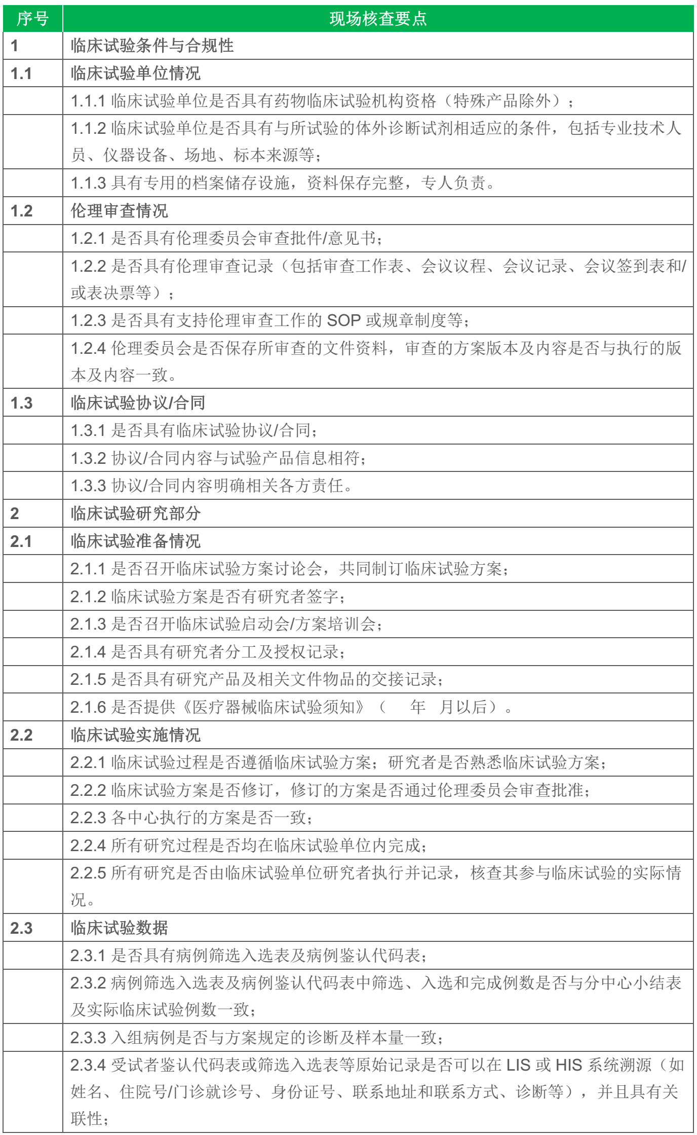 《體外診斷試劑臨床試驗現(xiàn)場核查要點(征求意見稿)》全文
